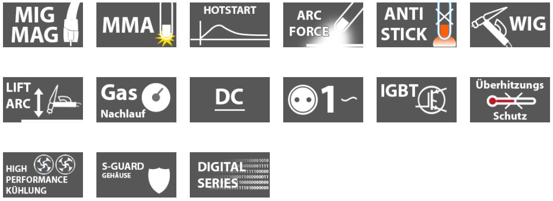 Il processo di saldatura con alimentazione automatica del filo è adatto a molte applicazioni di saldatura, anche per lavori in punti difficili da raggiungere. Il dispositivo eroga 30-165A in modalità MIG, 30-160A in modalità MMA (saldatura a elettrodo) e 10-160A in modalità TIG opzionale.