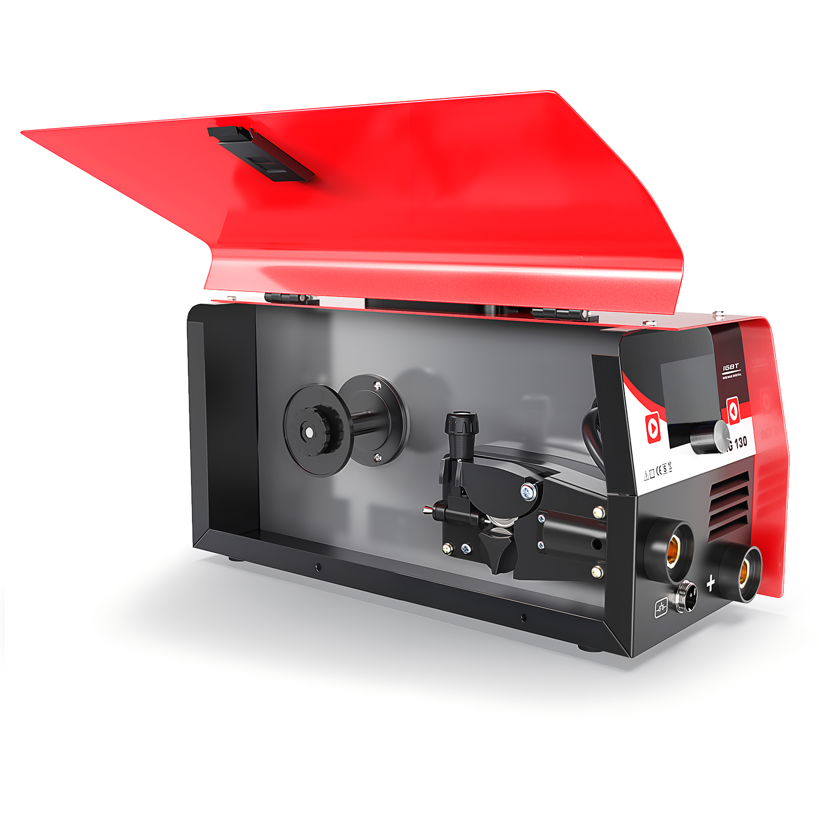 Grazie all'avanzata tecnologia dell'inverter IGBT e alla funzione di compensazione automatica della lunghezza d'arco, la MIG 130A offre un arco stabile, bassi spruzzi e una bella sagomatura.